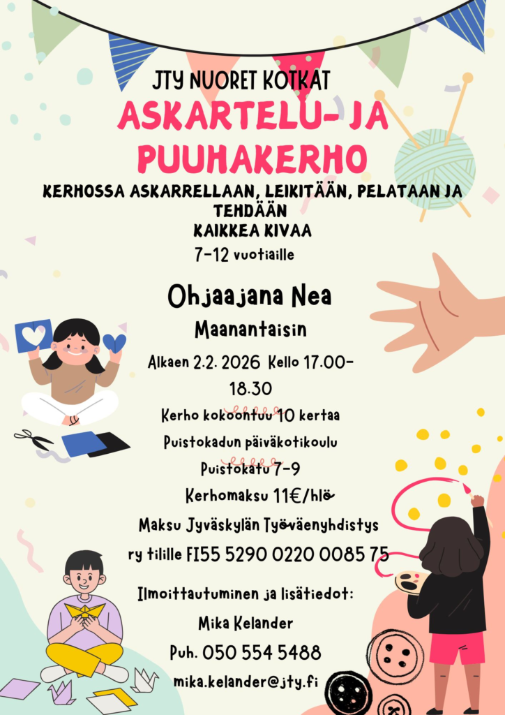 Huom! Otamme mukaan toimintaan uusia täysi-ikäisiä kerho-ohjaajia sekä nuoria 13-17-vuotiaita vertaisohjaajia. Tiedustelut: Ohjaajat: mika.kelander@jty.fi tai vertaisohjaajat: keski-suomi@nuoretkotkat.fi